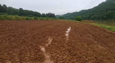 こちらの畑は連作障害を防ぐため春から夏にかけてとうもろこしを育てていました。すでに収穫を終えて耕し終わっているため雨が落ち着き次第、順次播種に入ります。この畑では保水性・保肥性に優れており、乾燥した時のために今年は滴灌を導入するよう提案しました。