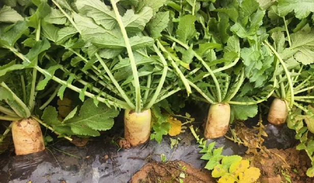 現地では、ちょうど種まきが終わり大根は肥大期へ。